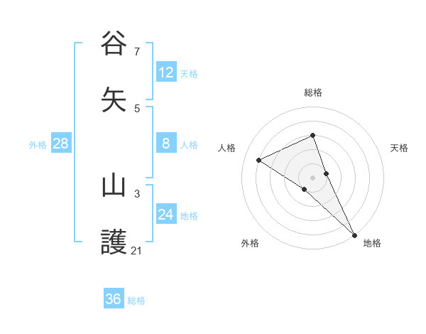 谷矢 山護さんを姓名の画数から五運を鑑定