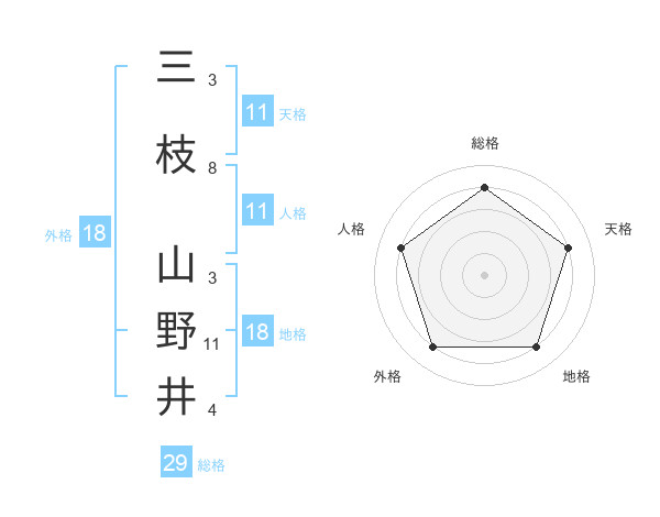 三枝 山野井さんを姓名の画数から五運を鑑定