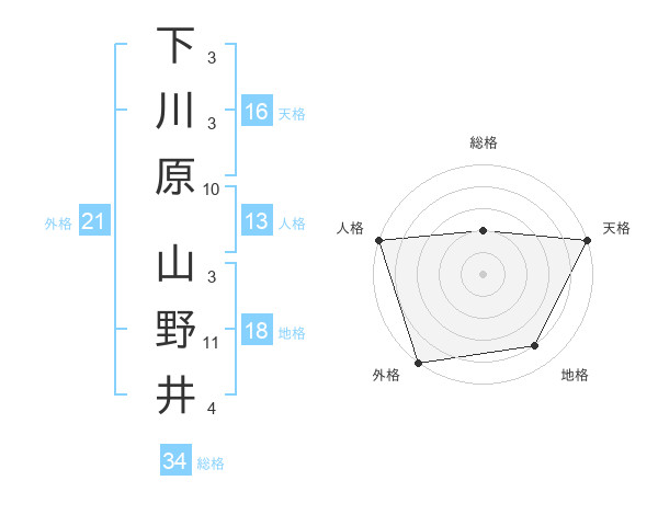 下川原 山野井さんの人格は13画の5点!