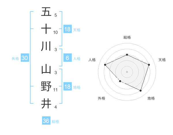 五十川 山野井さんを姓名の画数から五運を鑑定