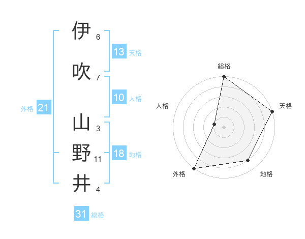伊吹 山野井さんの総格は31画の5点!