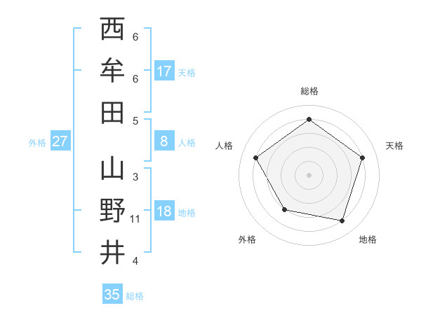 西牟田 山野井さんを姓名の画数から五運を鑑定