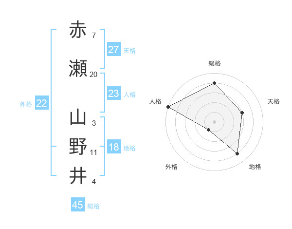 赤瀬 山野井さんを姓名の画数から五運を鑑定