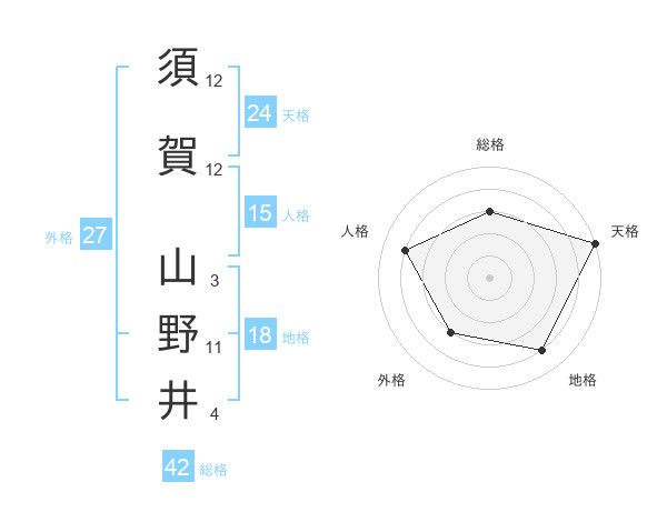 須賀 山野井さんの天格は24画の5点!