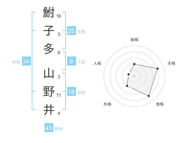 鮒子多 山野井さんを姓名の画数から五運を鑑定