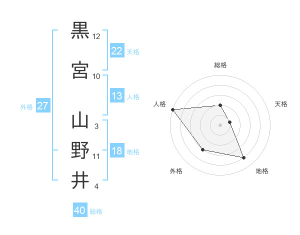 黒宮 山野井さんを姓名の画数から五運を鑑定