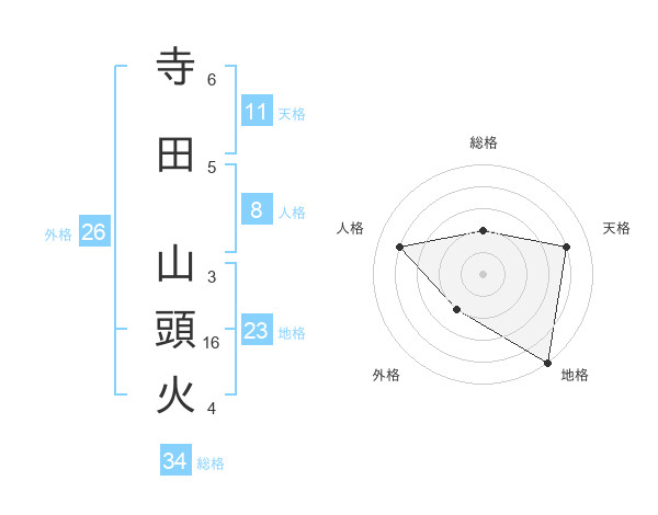 寺田 山頭火さんの総格は34画の2点!