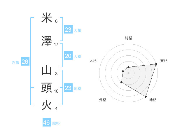 米澤 山頭火さんを姓名の画数から五運を鑑定