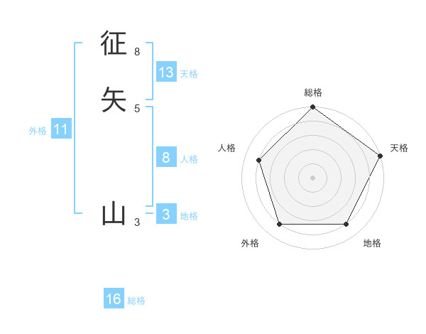 征矢 山さんの天格は13画の5点!