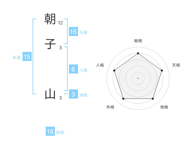 朝子 山さんの天格は15画の4点!