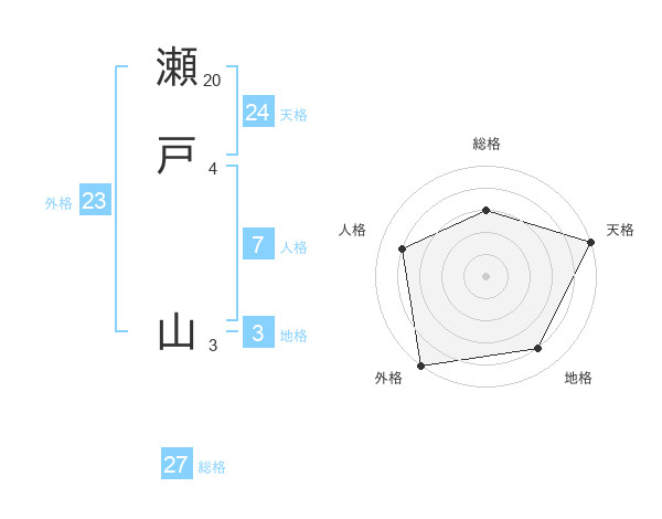 瀬戸 山さんの総格は27画の3点!