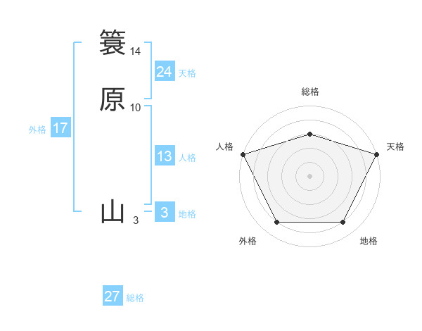 簑原 山さんの総格は27画の3点!
