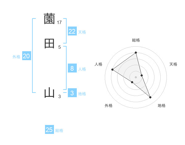 薗田 山さんの総格は25画の4点!
