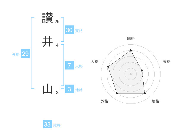 讃井 山さんを姓名の画数から五運を鑑定