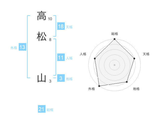高松 山さんの総格は21画の5点!