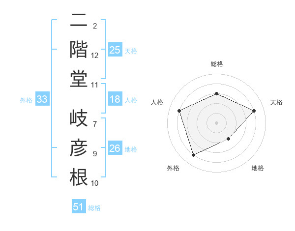 二階堂 岐彦根さんの総格は51画の3点!
