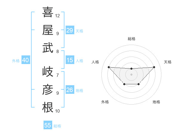 喜屋武 岐彦根さんを姓名の画数から五運を鑑定