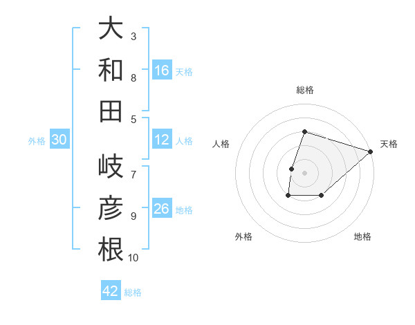 大和田 岐彦根さんを姓名の画数から五運を鑑定
