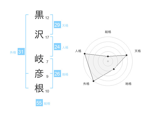 黒沢 岐彦根さんの外格は31画の5点!