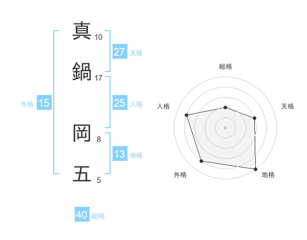 真鍋 岡五さんを姓名の画数から五運を鑑定