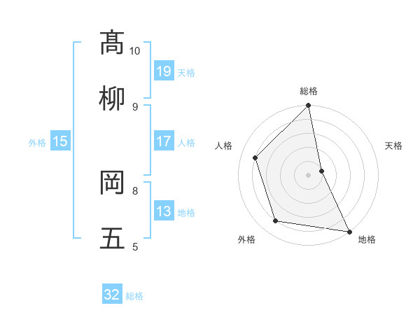髙柳 岡五さんの総格は32画の5点!