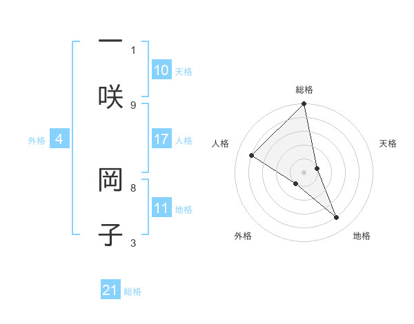 一咲 岡子さんの人格は17画の4点!