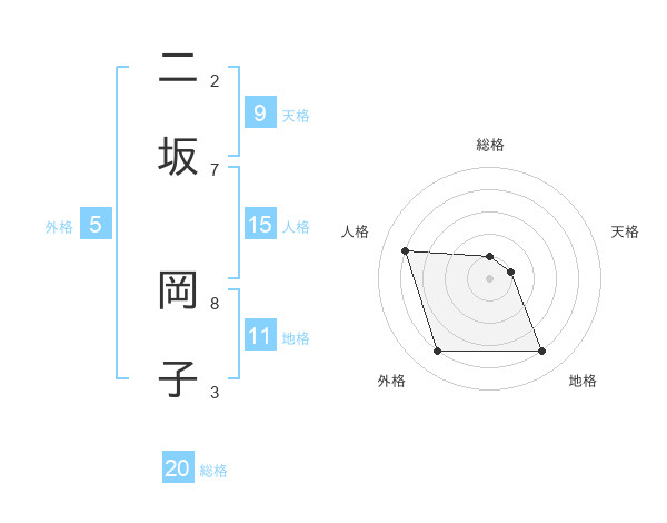 二坂 岡子さんの総格は20画の1点!