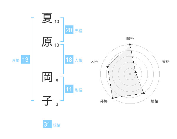 夏原 岡子さんの総格は31画の5点!