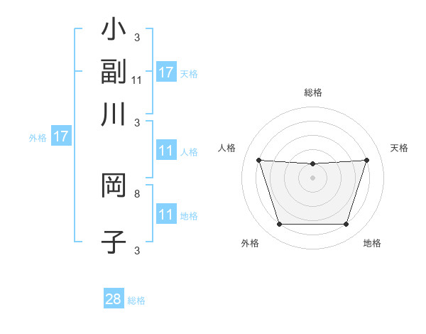 小副川 岡子さんを姓名の画数から五運を鑑定