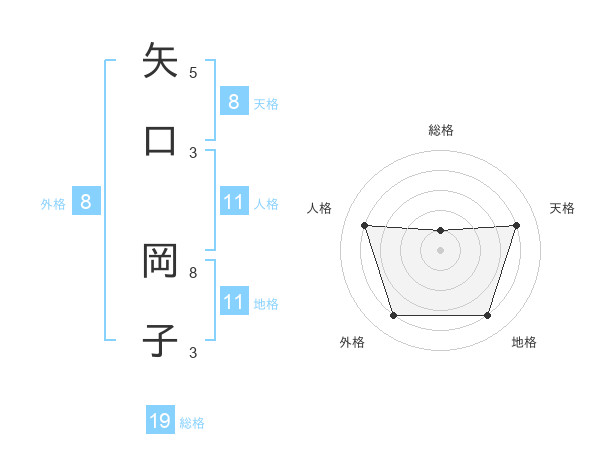 矢口 岡子さんの天格は8画の4点!