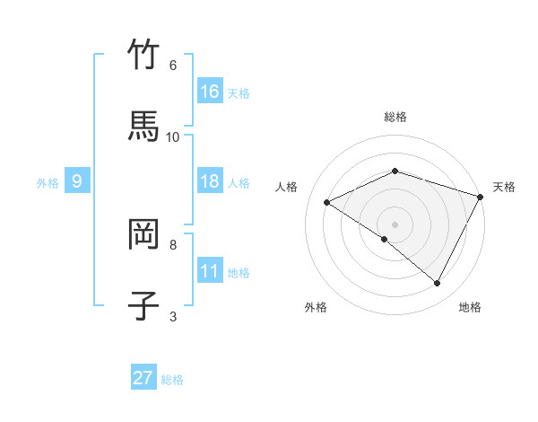 竹馬 岡子さんの総格は27画の3点!