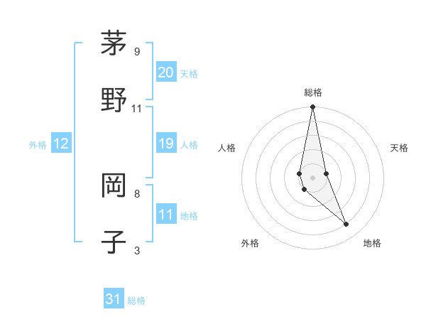 茅野 岡子さんを姓名の画数から五運を鑑定