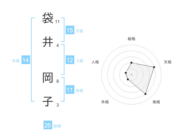 袋井 岡子さんを姓名の画数から五運を鑑定