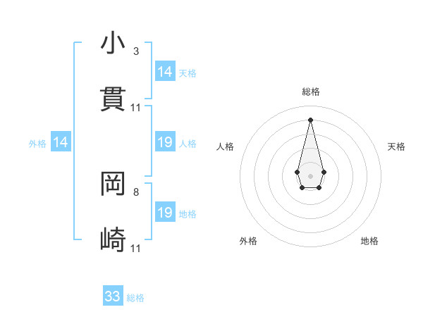 小貫 岡崎さんの総格は33画の4点!