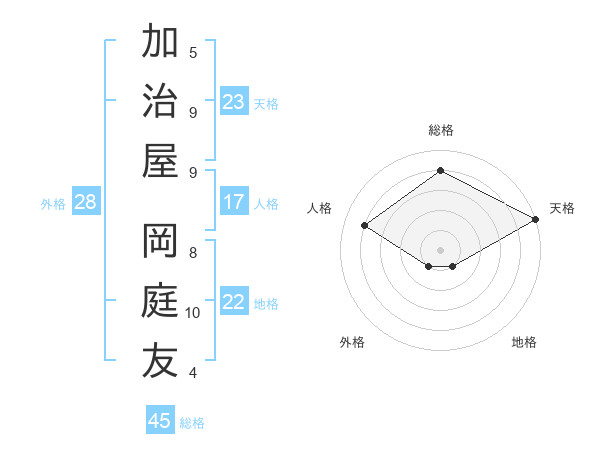 加治屋 岡庭友さんの総格は45画の4点!