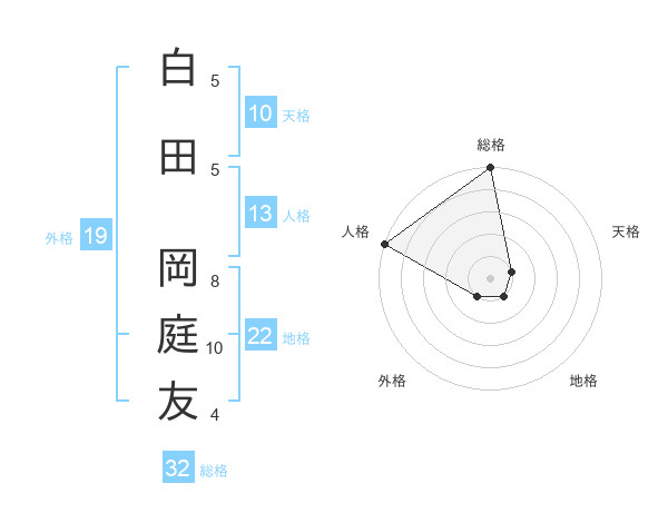 白田 岡庭友さんを姓名の画数から五運を鑑定