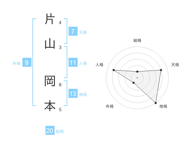 片山 岡本さんの地格は13画の5点!