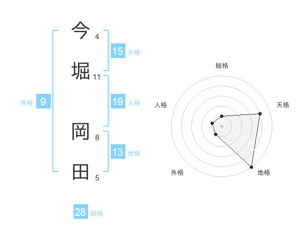 今堀 岡田さんを姓名の画数から五運を鑑定