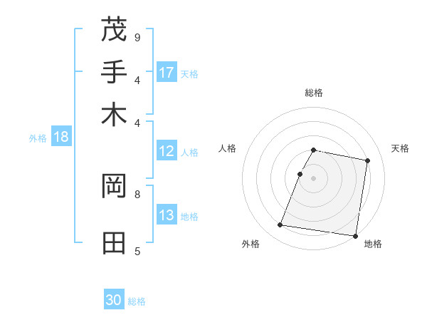 茂手木 岡田さんを姓名の画数から五運を鑑定
