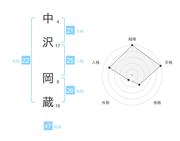 中沢 岡蔵さんの総格は47画の5点!