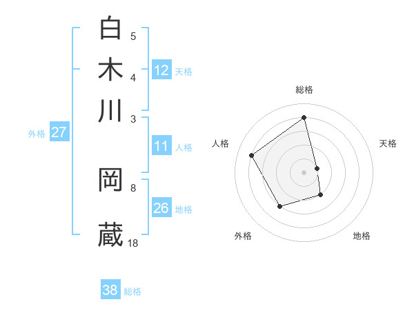 白木川 岡蔵さんの総格は38画の4点!