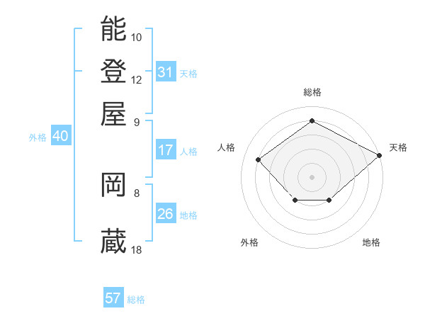 能登屋 岡蔵さんを姓名の画数から五運を鑑定
