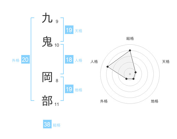 九鬼 岡部さんの地格は19画の1点!