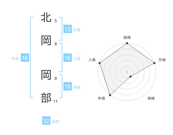 北岡 岡部さんの外格は16画の5点!