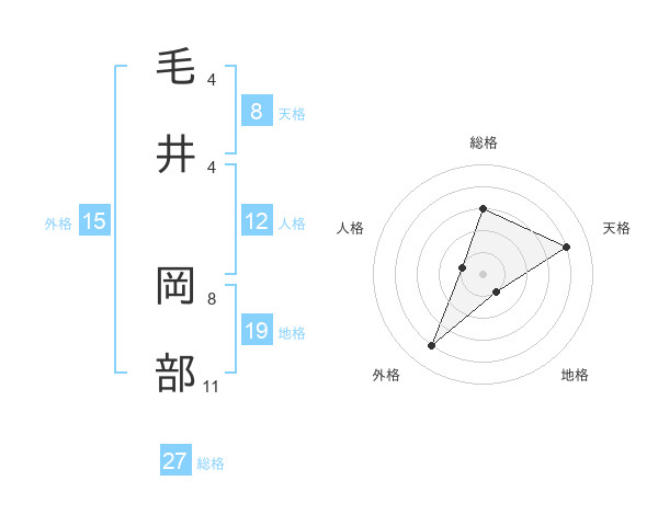 毛井 岡部さんを姓名の画数から五運を鑑定