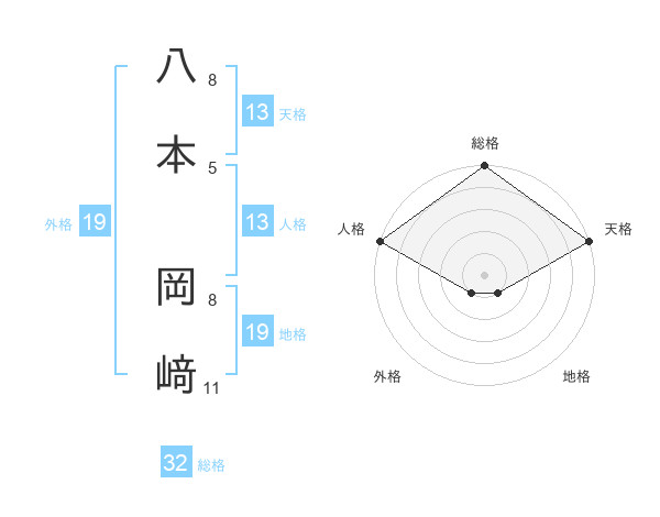 八本 岡﨑さんの人格は13画の5点!