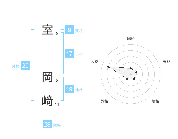 室 岡﨑さんの総格は28画の1点!