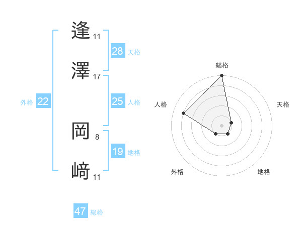 逢澤 岡﨑さんの総格は47画の5点!