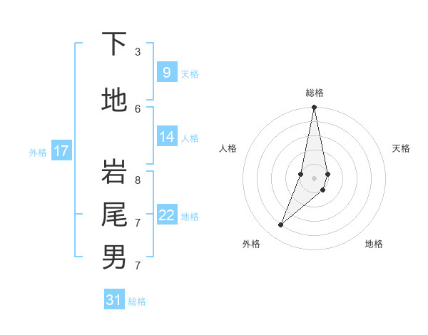 下地 岩尾男さんを姓名の画数から五運を鑑定