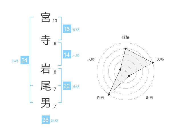 宮寺 岩尾男さんの総格は38画の4点!